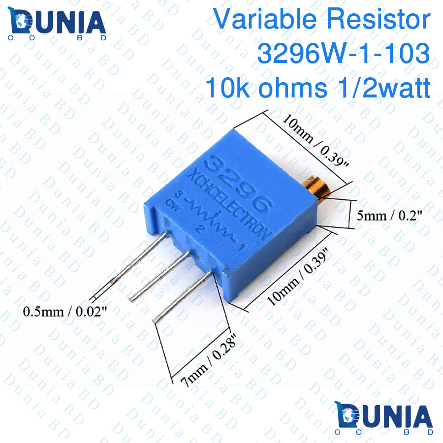 Buy 103 10k Ohm VR / 103 Ten kilo ohm Variable Resistor in Bangladesh from online at Dunia.com.bd.