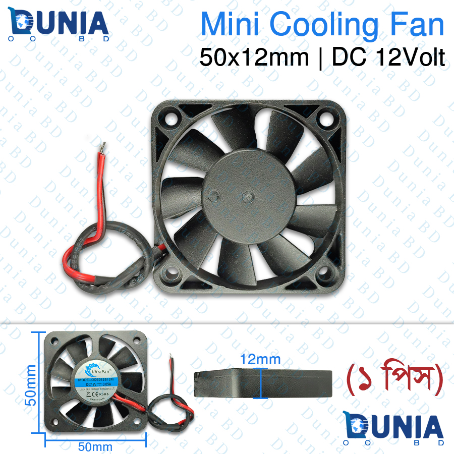 The latest price of Mini Cooling Fan 50x12mm DC 12V in Bangladesh is Price: ৳65.00 taka for 1Pcs Fan. You can buy this product at better and cheaper price from our website and also you can visit our warehouse between work hours 10am to 8pm.