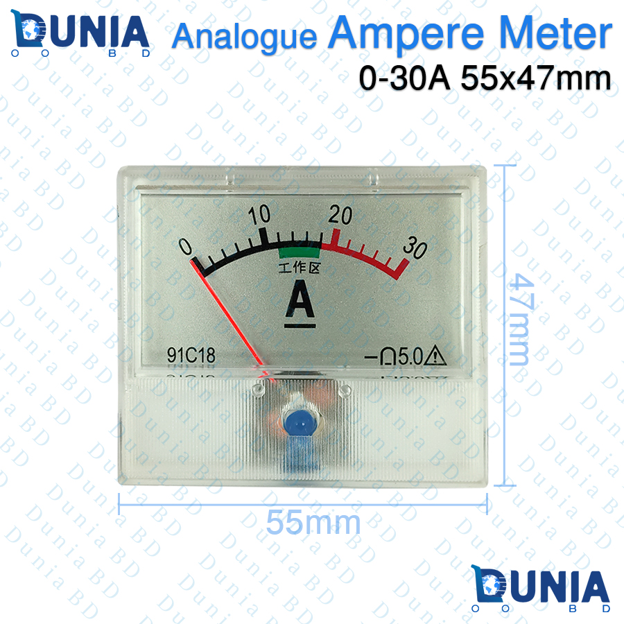 Buy Analogue DC Ammeter 0-30A Panel Meter 55x47mm 91C18 Current Gauge in Bangladesh from online at Dunia.com.bd.