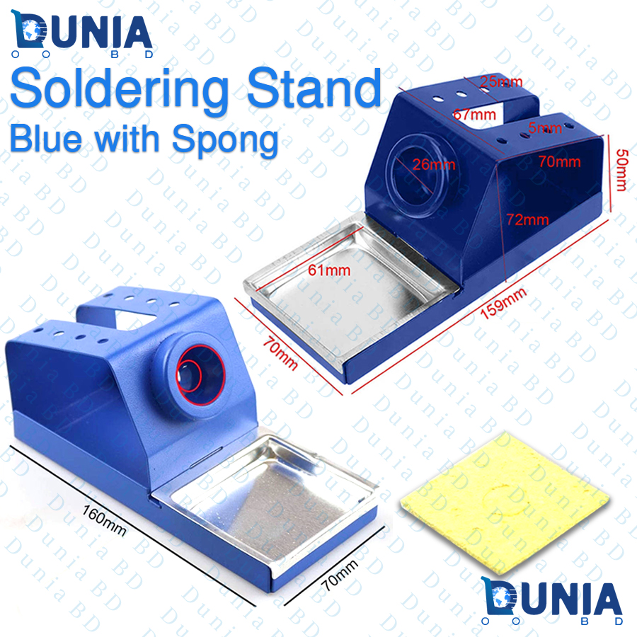 Soldering Iron Stand Blue with Cleaning Sponge Durable Metal Holder for Soldering Stations