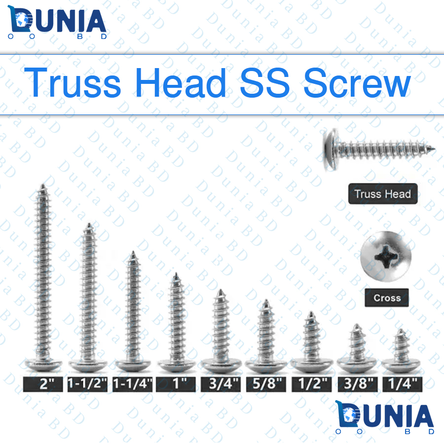 Buy #10×5/8 Sheet Metal SS Screws Phillips Truss Head Self Tapping Tip for Wood, Furniture Water Filter in Bangladesh from online at Dunia.com.bd.