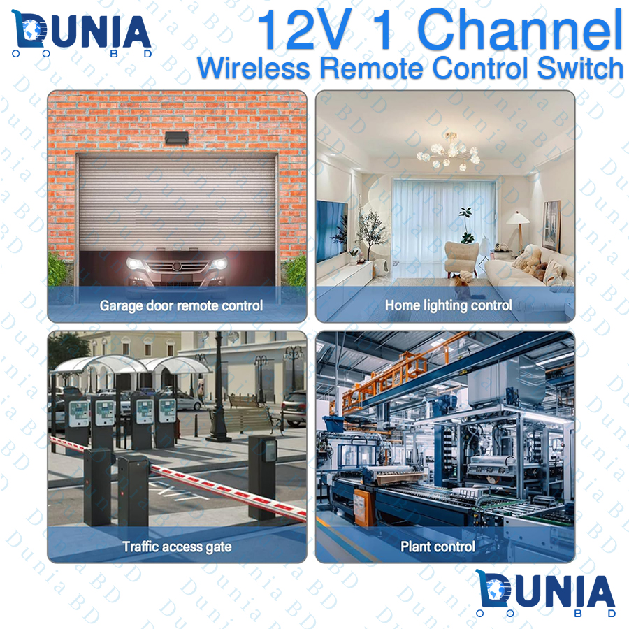 - Perfect for home automation, security systems, industrial control, traffic gates, or DIY projects in Bangladesh. The included protective plastic enclosure keeps the module safe from dust and moisture. Buy this affordable wireless remote switch from Dunia BD and enjoy convenient remote control without complicated wiring.