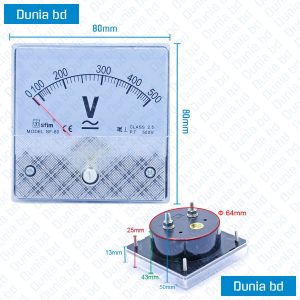 The latest price of Analogue AC Volt Meter Square Panel Meter 80x80mm sfim SF-80 in Bangladesh starts from Price: ৳420.00 taka for 1 Pcs Analogue AC Volt Square Panel Meter. You can buy this product at a better and cheaper price from our website and also you can visit our warehouse between work hours 10am to 8pm.