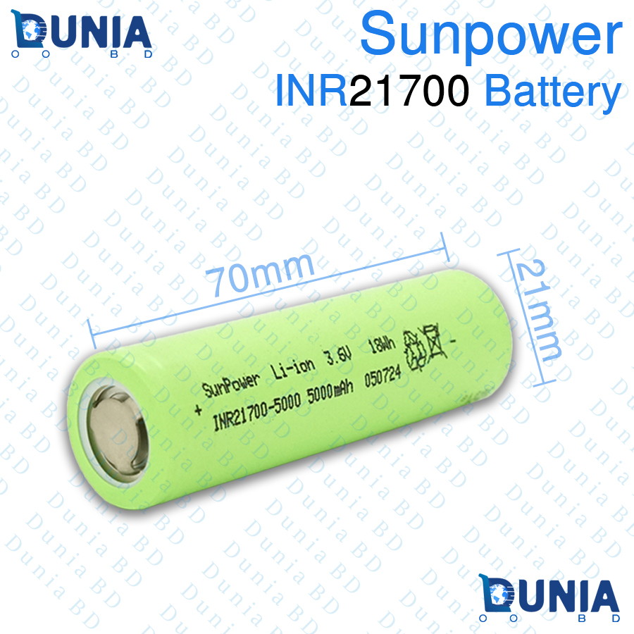 Buy Sunpower INR21700-5000 lithium-ion battery 3.6V High Capacity Rechargeable Cell in Bangladesh from online at Dunia.com.bd.