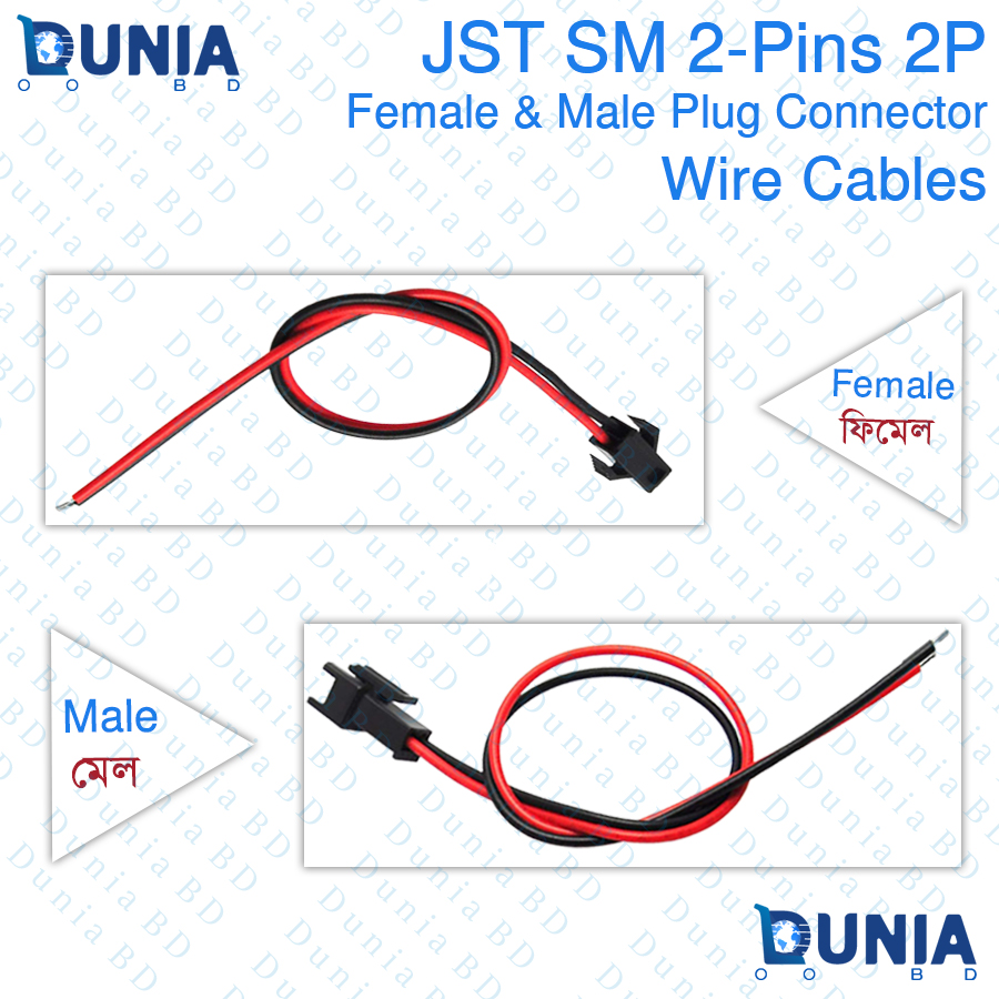 Buy JST SM 2-Pins 2P Black Female & Male Plug Connector Wire Cables for Arduino in Bangladesh from online at Dunia.com.bd.