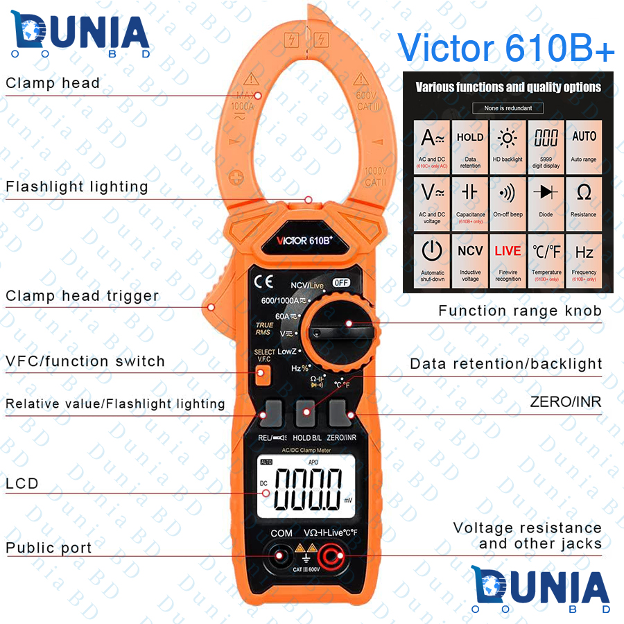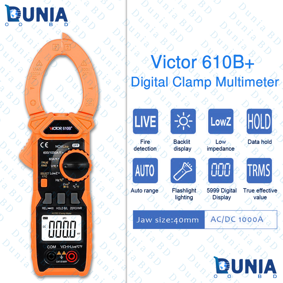 Buy Victor 610B+ True RMS Digital Clamp Meter with Flashlight 1000V 1000A Multimeter for Electricians in Bangladesh from online at Dunia.com.bd.